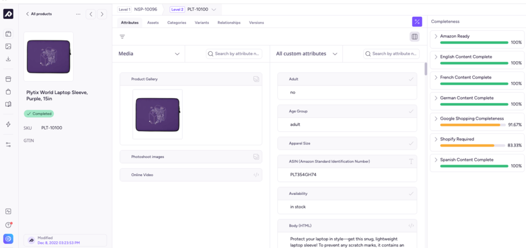 Muchos PIM incluyen controles para detectar qué falta completar, qué está inconsistente o qué debería revisarse. Esa idea de trabajar sobre un dato más completo, preciso y consistente es parte central del valor de estas plataformas. (Akeneo)